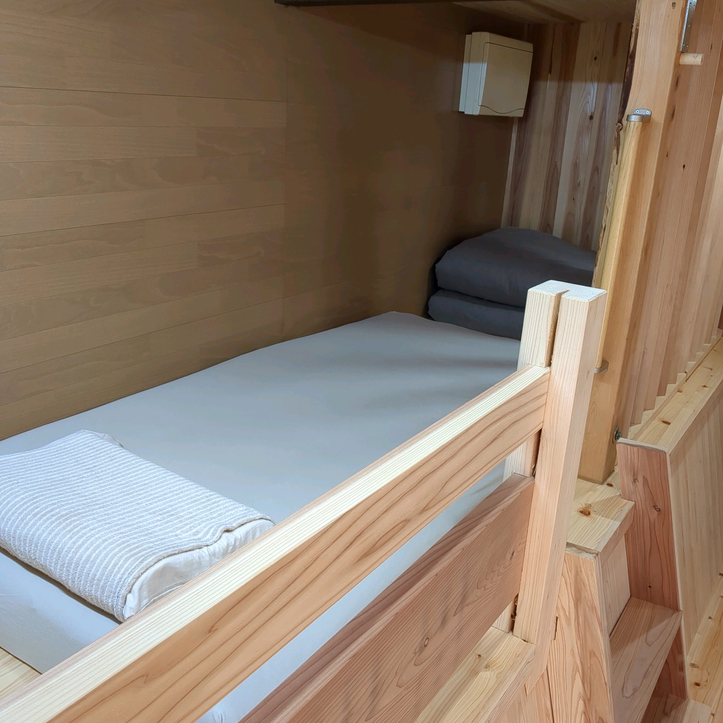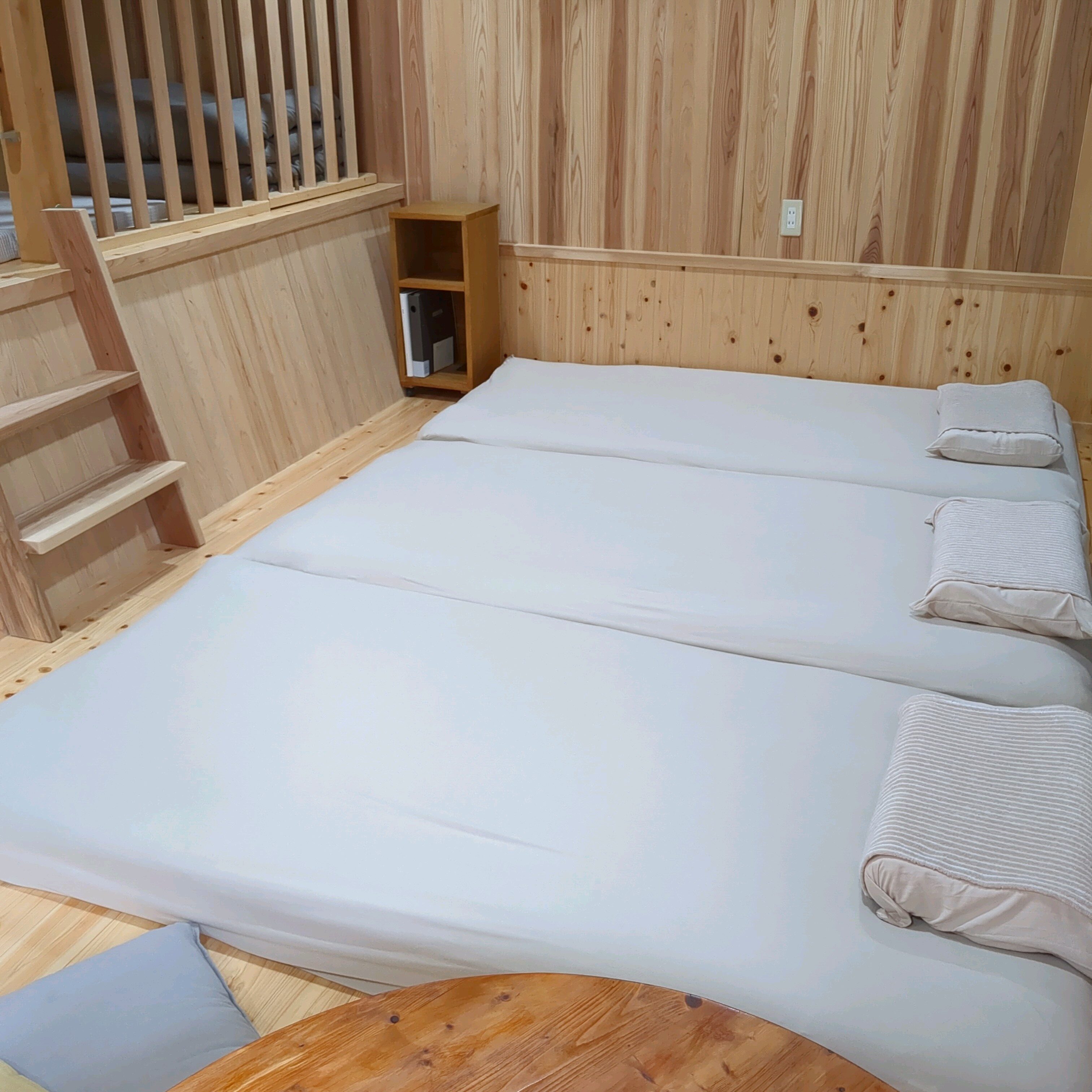 ベッドスペースへ布団3枚可、床に布団3枚敷くことが可能です。