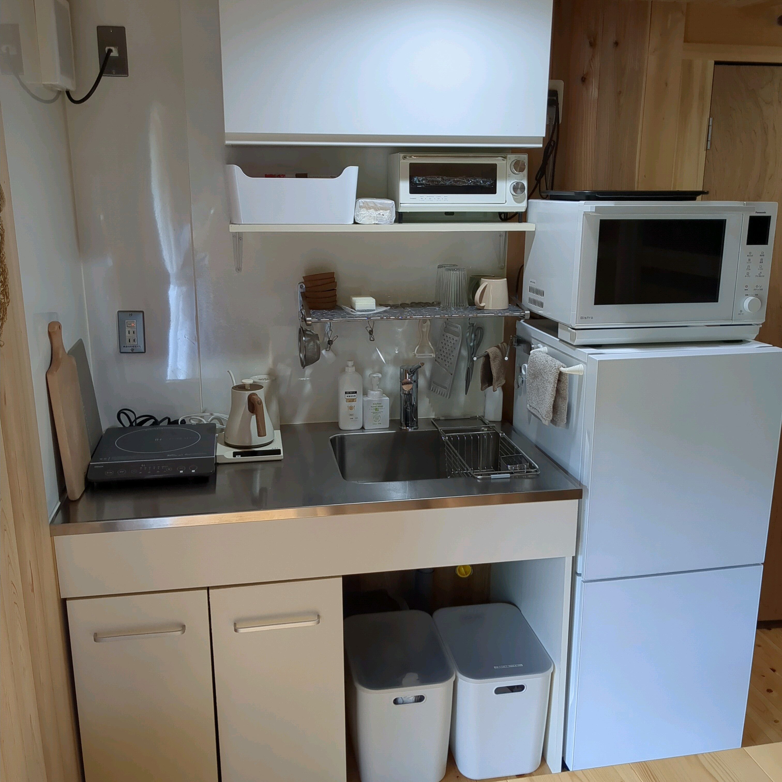 冷凍冷蔵庫、オーブンレンジ、IHコンロ、炊飯器、ミニホットプレート、