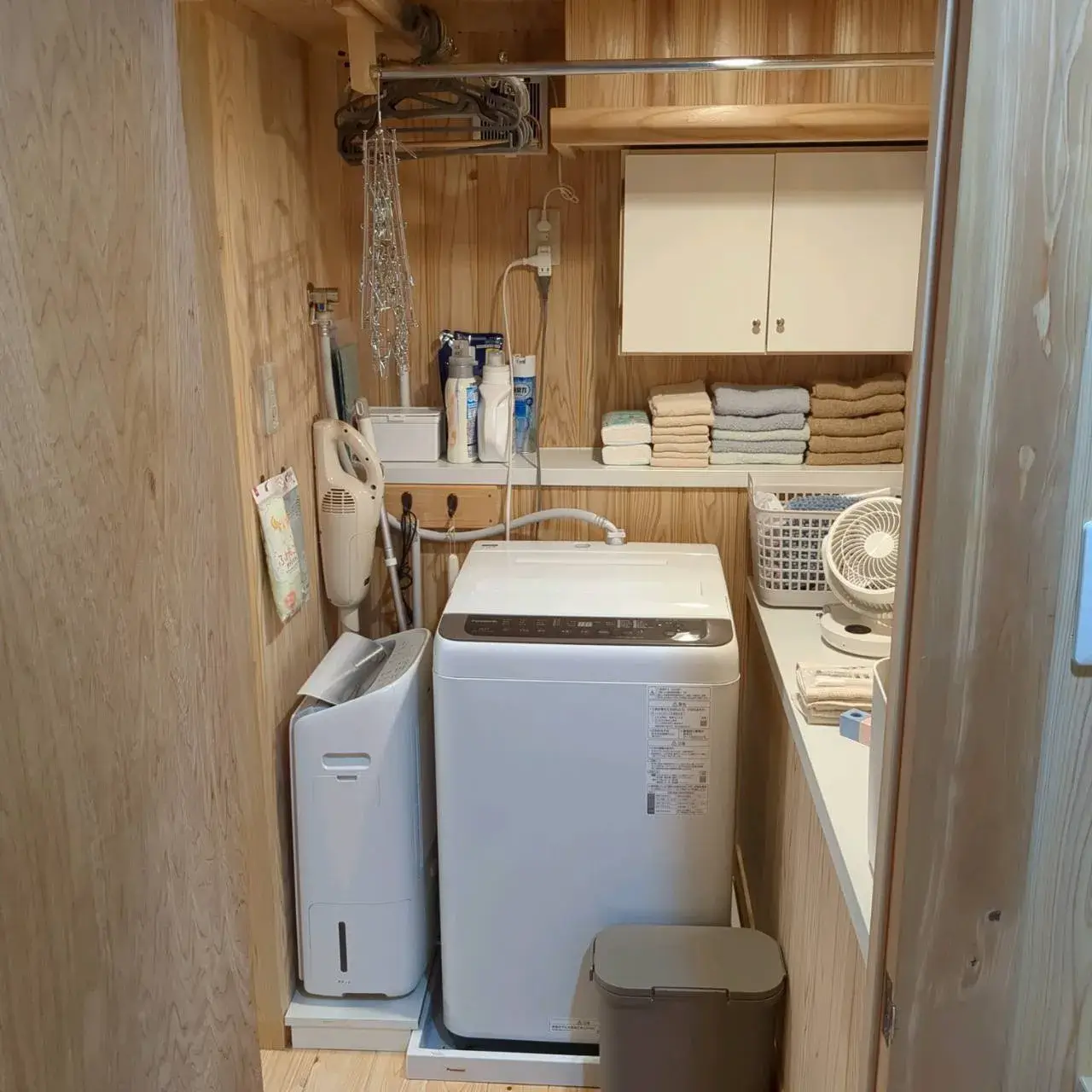 歯ブラシ、綿棒、洗濯機、除湿衣類乾燥機、洗濯物干し リビング WiFi、テレビ、エアコン、電気ファンヒーター、扇風機、文房具